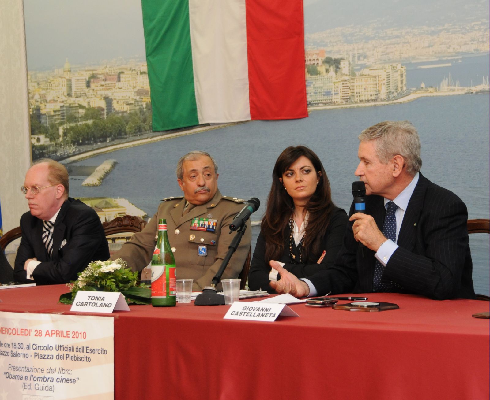 È stato presentato, in un doppio appuntamento a Salerno e a Napoli, il libro “Obama e l’ombra cinese” di Giovanni Castellaneta (Ed. Guida). Alla presenza dell’autore, Giovedì, 22 aprile ore 18,30, presso il Grand Hotel Salerno, sono intervenuti il Vicepresidente della Provincia di Salerno Anna Terrazzano, il Presidente Onorario dell’Associazione “i Meridiani” Alfonso Giarletta, il professor Massimo Panebianco, docente di Diritto internazionale dell’Università di Salerno ed il giornalista Giuseppe Scanni. A moderare l’incontro, la giornalista Francesca Blasi. Mercoledì 28 Aprile alle ore 18,30, al Circolo Ufficiali dell’Esercito Italiano -Palazzo Salerno- Piazza del Plebiscito, sono intervenuti Michele Giannattasio, Presidente dell’Associazione “i Meridiani”, il Brig. Gen. Giovanni Capone del Comando Logistico Sud, Ottavio Lucarelli, Presidente dell’Ordine dei Giornalisti della Campania, J. Patrick Truhn, Console Generale Americano a Napoli, il giornalista Giuseppe Scanni e Tonia Cartolano, giornalista Sky Tg24 che ha moderato l’incontro. Dal punto di osservazione privilegiato di Giovanni Castellaneta, Ambasciatore d’Italia a Washington dal 2005 al 2009, il racconto in prima persona del lungo, affascinante, itinerario per scoprire le radici profonde di una vittoria storica che consente a Obama di provare a costruire il “nuovo sogno americano”, una nuova pagina di Storia che riguarda anche tutti noi da vicino. Il libro è di particolare interesse per capire meglio perché un grande Paese come gli Stati Uniti che stava vivendo la più grave crisi economica dai tempi della Grande Depressione e che stava combattendo due guerre è stato capace di esprimere un Presidente come Obama. Ed anche per comprendere meglio le sfide che il Presidente Obama pone al suo Paese: la lotta contro la crisi economica, la ripresa seguendo modelli di sviluppo nuovi, il difficile confronto con il “gigante” cinese ma anche le grandi battaglie per garantire assistenza sanitaria universale, la sicurezza e la libertà al mondo, coniugando pragmatismo e idealismo.