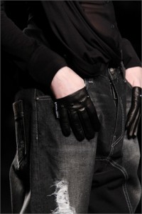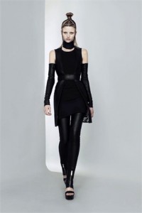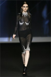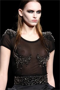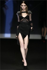 Rispetto alla scorsa stagione, la costruzione dei capi non annulla la forma del corpo a favore dell’idea e dell’architettura (vedi McQueen). Al contrario, la sottolinea: le giacchine e gli abiti slim lasciano scoperti lembi di pelle che enfatizzano le linee del décolleté. Le lunghezze mini portano l’attenzione sulle gambe, così come fanno pantaloni da motociclista e leggings. Un ‘occhiata alla collezione Frankie Morello: vampiresse imprigionate in corpi da bambine, pallide, ambigue. Regine oscure, creauture della notte, vivono l’oscurità come unica fonte di vita ed unica “veste”.