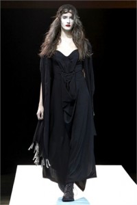 Resta l’ispirazione goth-vampiresca -vedi l’abito Chalayan con cappuccio che copre la testa-, sottolineata- strano ma vero!!- anche per la prossima stagione- Margiela, Pugh, Chanel e Yamamoto- accanto a mise decisamente più “allegre”.