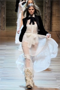 D & G li sceglie morbidi e pellicciosi, abbinandoli invece ad abiti sexy svolazzanti, in pizzo e chiffon, maxi pull tricottati,