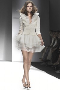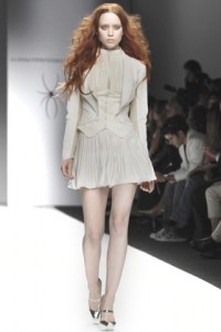 Dolce ma maliziosa la proposta Alessandro De Benedetti perché portata assieme a una blusa-gilet con piccolo plissè see- trough . Proporzioni