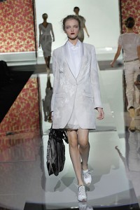 La giacca morbida , decostruita , quella che si svuota di ogni imbottitura per seguire la sagoma del corpo , torna alla ribalta. Consacrata al successo proprio dai powers suits targati Armani degli anni ’80, il blazer- piuma è vincente non solo negli abbinamenti mannish, ma anche con una più