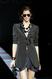 Come la proposta dark di Emporio Armani : sobria ma di carattere. In total black . Con spalle disegnate e punto vita segnato da una garbata abbottonatura . Unica eccezione al femminile ? Il collier a più giri di elementi laccati . Da portare con una camicia button down e un gilet . Ma basta anche solo un dettaglio maschile , una cravatta , un paio di bretelle o scarpe stringate , per essere subito chic .