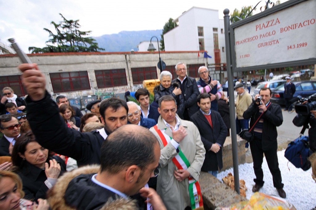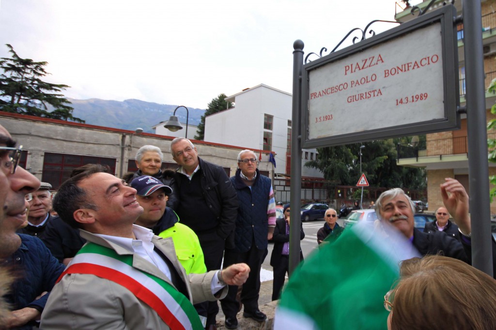 Si è tenuta sabato 16 aprile, alle ore 17 e 30, presso il giardino pubblico sito all’intersezione tra via D’Annunzio e via Einaudi, a Castellammare di Stabia, la cerimonia di intitolazione della locale piazza alla memoria del professor Francesco Paolo Bonifacio, nostro emerito concittadino. All’evento ha preso parte il sindaco Luigi Bobbio, l’assessore comunale Giovanni de Angelis, rappresentanti dell’amministrazione e del aonsiglio comunale, il parroco della chiesa del rione San Marco, i familiari del professor Bonifacio e una foltissima rappresentanza di cittadini stabiesi.