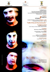 La giornata del 14 maggio consisterà in un incontro di presentazione aperto al pubblico, che tratterà a tematica della Maschera, con dimostrazione di lavoro e videoforum, a cura di Michele Monetta e Alfonso Amendola.