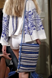 L’allure etnostyle viene accentuata dalle borse di tela tessuta o stampata e profilata di cuoio e dalle bisacce piatte di pelle e rettile colorato con frange . Tocco Seventies /bohémienne il foulard stampato per i capelli .