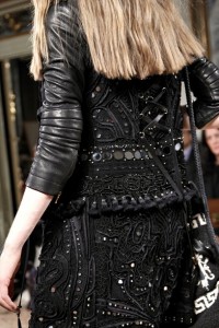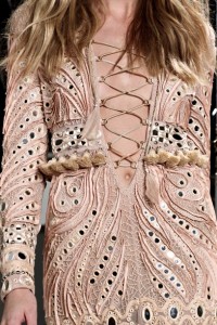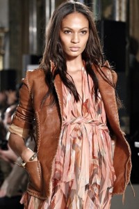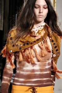 Pura predilezione per i pants a zampa di elefante portati con blazer sartoriali , slim , dai colori pastello . Ma è soprattutto la pelle a dar(l)e il meglio rifuggendo da ogni clicché , puntando su un’allure sofisticata e vissuta , fatta di tagli inconsueti , trattamenti effetto vintage e incursioni nel patchwork . Tocco very cowgirl dunque per le giacche di pelle o cuoio profilate , con frange , abbinate ad abiti lunghi in jersey stampato e specchietti applicati . Non manca il tocco prezioso dei capispalla in rettile lavato , adorno di frange e cucitore décor .