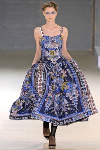 Marco Zanini per Rodarte prende spunto dalla Svezia anni ’50 mescolando stampe naif e folk dai colori vivaci con fantasie marcate , ispirate proprio dalle ceramiche , disegnate da Slotts Barbo . Forme morbide , fluide , fluttuanti che accompagnano il mood “lady like” leggermente retrò , elegante , fatto di