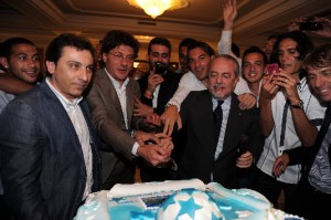 Nella incantevole location di Villa D’Angelo, in via Aniello Falcone, al Vomero, il Napoli si è ritrovato per celebrare la splendida cavalcata Champions. Presenti il Presidente Aurelio De Laurentiis con la moglie Jacqueline, il Vice Presidente Edoardo De Laurentiis, il Consigliere delegato e Direttore Finanziario del Napoli Andrea Chiavelli, il Direttore Marketing Alessandro Formisano, il Direttore Sportivo Riccardo Bigon, l’allenatore Walter Mazzarri, lo staff tecnico e tutti i calciatori azzurri con le rispettive compagne.