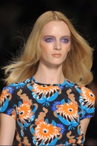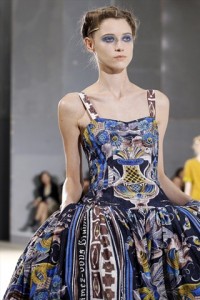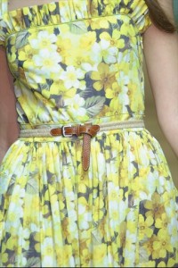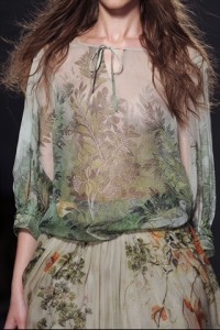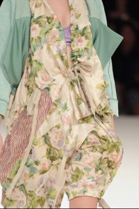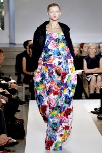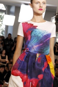 nuance delicate –Luisa Beccaria – a tinte squillanti dal sapore pop art – Jil Sanders -. Come in una maxi tavolozza d’artista , i fiori creano caleidoscopiche campiture anche su caftani , camicette e chemisier dal sapore rétro . Non manca il tocco inatteso d’eccentricità del