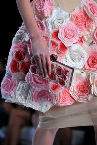 Rose , papaveri , margherite, fiori tropicali diventano , dunque , matrici décors – quando addirittura capi di per sé –anche per accessori che non