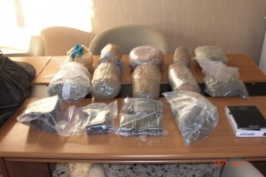 All’interno i poliziotti hanno rinvenuto quasi 5kg. di hascisc suddivisa in 38 panetti, e quasi 10kg. di marijuana suddivisa in 11 involucri, ed un bilancino di precisione.