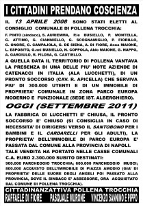 Oggi settembre 2011. La fabbrica di lucchetti è chiusa, il pronto soccorso è chiuso (si consiglia in caso di necessità di dirigersi verso il Santobono per i bambini e il Cardarelli per gli adulti), la proprietà dell’immobile di Parco Europa è passata dal Comune alla Provincia di Napoli. Tale vendita ha portato nelle casse comunali circa 2.300.000 euro subito destinati: 900mila parcheggio Trocchia; 600mila parcheggio Musci; 800mila acquisto dell’immobile di piazza Amodio (già di proprietà delle Suore degli Angeli poi passato alla Provincia, dove il sindaco è assessore, ora acquistato dal Comune di Pollena Trocchia).