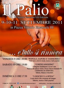 Si è conclusa ieri sera la XXI edizione del Palio della Città di Somma Vesuviana con la vittoria del Rione Casamale che, gareggiando ai giochi della tradizione quali il chirchio, il curuoglio, il tiro alla fune, la corsa con il sacco, la pignatta e il palo della cuccagna, ha avuto la meglio sugli altri rioni in gara e si è aggiudicato il drappo della vittoria, secondo il Rione Starza Mercato, terzo il Rione Castello.