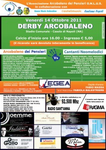 Un’altra sfida per l’Arcobaleno dei Pensieri, associazione onlus che opera nel campo solidale e filantropico, e per il Comune di Casola di Napoli. Dopo la presentazione dell’antologia L’arcobaleno dei pensieri – poesie per un mondo a colori in Sala Consiliare sabato 8 ottobre, il Primo Cittadino Domenico Peccerillo ha deciso di sostenere a pieno le iniziative di solidarietà promosse dalla suddetta associazione tanto da collaborare nuovamente con essa alla realizzazione di una partita di beneficenza denominata Derby Arcobaleno. Il Derby si disputerà venerdì 14 ottobre alle ore 16:00 presso il campo sportivo di Casola e vedrà “sfidarsi “ sul terreno di gioco la rappresentativa dell’Arcobaleno dei Pensieri e quella degli Artisti Neomelodici. Oltre agli artisti sono tanti gli ospiti che hanno aderito a questa iniziativa benefica: l’attore-regista Fabio Massa, che vestirà i colori della rappresentativa dell’ Arcobaleno dei Pensieri, la piccola attrice Fabiola Balestriere che darà il calcio d’inizio dell’incontro insieme al piccolo Ferdinando, Dino Cirillo, Giampy il pioniere e Francesco Balestriere. Presenteranno l’evento Lello Fioretti e Romina Sessa. Madrine dell’incontro Rossella Feltri, Emanuela Biondi e Raffaella D’amato. Il ricavato del Derby verrà devoluto alla casa famiglia Il giardino del sorriso di Pompei che da anni si prende cura dei bambini in difficoltà e che l’associazione sta sostenendo fin dalla sua nascita. Entusiasta di questa iniziativa il Sindaco Peccerillo: “Per Casola è un motivo di orgoglio ospitare un evento così importante. La mia amministrazione è sempre schierata in prima linea per promuovere e sostenere iniziative di solidarietà, soprattutto in un periodo come questo di profonda crisi credo che sia importante fermarci a riflettere ed aiutare chi è meno fortunato di noi”. Altrettanto entusiasta il fondatore e presidente dell’Arcobaleno dei Pensieri Salvatore Di Ruocco: “Ringrazio il Sindaco e l’amministrazione comunale di Casola per il sostegno ricevuto nell’organizzare e promuovere le nostre iniziative di solidarietà. Un ringraziamento speciale agli artisti neomelodici, alla Castel Music, a Cantiamo Napoli e all’ House Music Animation per aver accettato il nostro invito con grande entusiasmo. Venerdì sarà una bellissima giornata di sport, spettacolo e soprattutto di solidarietà”.