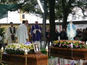 In un pomeriggio freddo e cielo coperto, Ottaviano si è stretta in un caloroso ed ultimo abbraccio alle famiglie di Antonio Annunziata e Alfonso Peluso, i due operai ottavianesi che persero tragicamente la vita, la mattina del 2 Novembre mentre lavoravano all’allargamento di un pozzo artesiano a Somma Vesuviana. I carri funebri hanno raggiunto la Casa delle Povere Figlie della Visitazione in San Gennarello di Ottaviano intorno alle 14. Nel cortile delle suore, le due bare disposte dinanzi all’altare, hanno ricevuto il saluto e l’omaggio di un intera comunità cittadina, ancora incredula per l’accaduto. Presente il comune con due ufficiali della Polizia Municipale in alta uniforme, a testimoniare la presenza dell’amministrazione comunale. C’è il vicesindaco Francesca Ambrosio, il presidente del consiglio comunale Giueppe Saviano che salutano affettuosamente le famiglie delle vittime della tragedia di Somma Vesuviana, portando loro parole di conforto e vicinanza. All’arrivo dei feretri, un conoscente delle vittime, intona a cappella l’Ave Maria. Ad officiare il rito funebre delle ore 15.00 Monsignor Pasquale D’Onofrio Vicario Generale della Diocesi di Nola con il Parroco Don Raffaele Rianna. “Di fronte a quanto è accaduto, a questa tragedia, chi ci potrà dire una parola di speranza?” Con queste parole, il Vicario Generale ha aperto la sua omelia ed ha poi continuato dicendo “La Fede ci porta la certezza che questa tragedia non è un punto di non ritorno. E noi avremo la gioia di rincontraci di nuovo. E noi già adesso possiamo avere la gioia nel dolore di continuare a vivere la vicinanza con Alfonso e Antonio attraverso una forma diversa che è quella della preghiera, quella del dolce ricordo, quella della possibilità di affidarci insieme all’unico Signore”. Il celebrante offre una sua riflessione sui gesti che hanno segnato questa tragedia. “Quello del lavorare per mantenere le proprie famiglie, che è un gesto di carità, di amore,di responsabilità. Ed il secondo gesto, quello dell’aiutarsi l’uno con l’altro. Sono due gesti che non dobbiamo dimenticare, perché ci insegnano che c’è una dignità in quello che si compie. Ma a questa dignità segue anche una grande umanità. Soccorrere l’altro, andare verso l’altro sempre e comunque. Non smetteranno le nostre lacrime, non smetterà il dolore del distacco. Ci sarà però la consolazione che nel signore si può essere giusti e nella nostra umanità si può essere fratelli.” Alla fine della celebrazione prende la parola uno dei fratelli di Alfonso Peluso, che in poche righe descrive la vita della più giovane delle due vittime della tragedia, una vita fatta di molti sacrifici e poche soddisfazioni, ma segnata dalla lealtà, felicità, onestà. Viene descritto come una persona sincera e onesta Alfonso, un fratello, un amico da non perdere mai, di quelle persone che sai di avere sempre dietro di te anche quando è lontano. Una persona che ha insegnato la vera umiltà, a lavorare sodo e a combattere per raggiungere un obiettivo. “Mi parlavi sempre del tuo primo amore – scrive il fratello di Peluso – della musica, del tuo mondo magico, e tu che con la tua voce riempivi i nostri cuori di magia, ti ricorderemo sempre con il cuore pieno di gioia ma anche di malinconia. Io sono orgoglioso di averti avuto come fratello, un altro pezzo del mio cuore andato via. Di tante giornate volate via, ma quello che resta, come diceva una tua canzone preferita è che ti ricorderemo con tanto amore, ciao piccolo grande amore, ogni notte andando a dormire, i tuoi nipoti manderanno un bacio lassù dove ora tu canterai tra gli angeli, diventerai la prima voce del coro. Ciao fratello mio riposa in pace”. Nelle parole di una nipote di Peluso, il ringraziamento al “Signor Antonio” che voleva salvare lo zio e che senza pensarci un attimo è sceso nel pozzo per tentare di portarlo su. Alla fine del rito funebre sono i stessi familiari a portare le bare di Antonio e Alfonso, che hanno lasciato la casa delle Suore, tra gli applausi dei presenti.