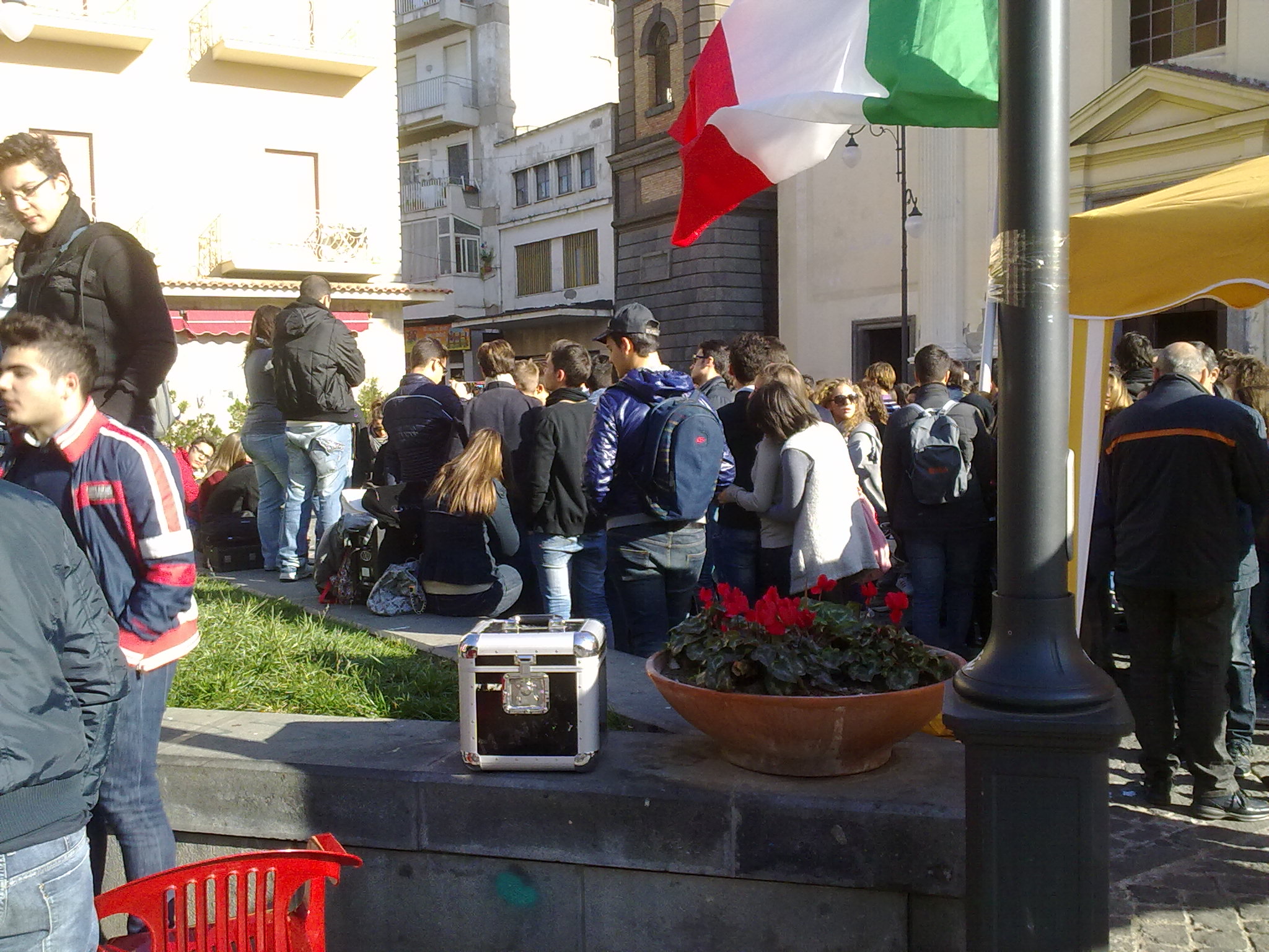Questa mattina anche gli studenti scafatesi si sono organizzati ed hanno dato vita ad una vera e propria manifestazione che è iniziata verso le 8.30. Gli studenti si sono radunati davanti al liceo scientifico di Scafati “Renato Caccioppoli” per poi arrivare a piazza Vittorio Veneto dove si è tenuta una conferenza. Da sottolineare la nutrita presenza di giovani studenti provenienti soprattutto dal liceo scientifico. Alla conferenza erano presenti ovviamente anche i rappresentanti d’istituto della scuola. Michele Cirillo rappresentante del liceo Caccioppoli ha detto: “Innanzitutto questa manifestazione è un banco di prova per noi stessi. Vogliamo far vedere soprattutto al nostro preside ed alla città di Scafati la nostra compattezza quando si tratta di combattere per problemi importanti e per ottenere la settimana di protagonismo. Inoltre essendo la giornata mondiale degli studenti questa manifestazione ci dà anche la possibilità di parlare dei diritti mancati degli studenti. In merito a questo ho riassunto il nostro disagio in tre punti. Innanzitutto la libertà di movimento e perciò il disagio che stiamo attraversando in quanto i servizi che riguardano il trasporto si trovano in una situazione deplorevole. Inoltre le nostre difficoltà riguardano anche la riforma Gelmini. Ed in proposito ne abbiamo sottolineato i punti positivi e negativi. Infine vogliamo dare un’informazione completa e dettagliata a tutti gli studenti sull’attuale crisi economica”.