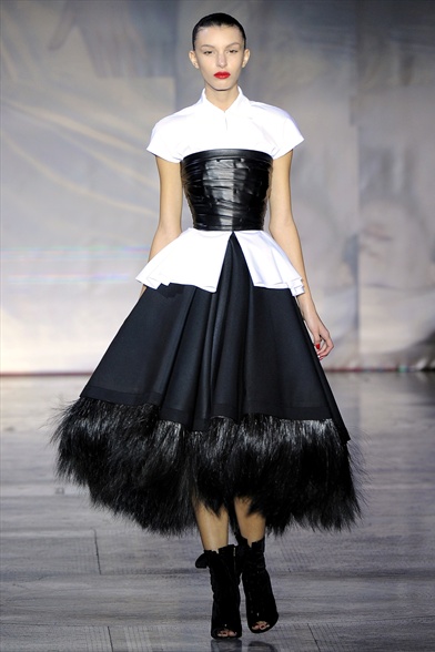 Così vengono interpretati il bianco e il nero : un equilibrio perfetto e misurato . Nei capi domina l’uno o l’altro , sempre in accordo – e talvolta in contrasto- , o si dividono equamente il look .