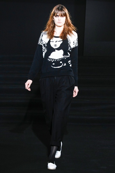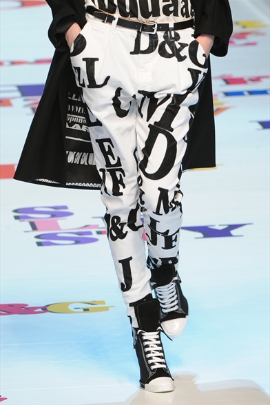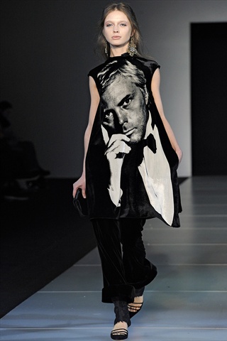 Attitudine nostalgica di stampo serigrafico con soggetti celebri, per capi che paiono acqueforti – Armani – , capace di cedere anche ad una certa ventata rock n’ roll con un tocco gothic e tanto di soggetto “artistico” e graffiti geroglifici – Devastee-