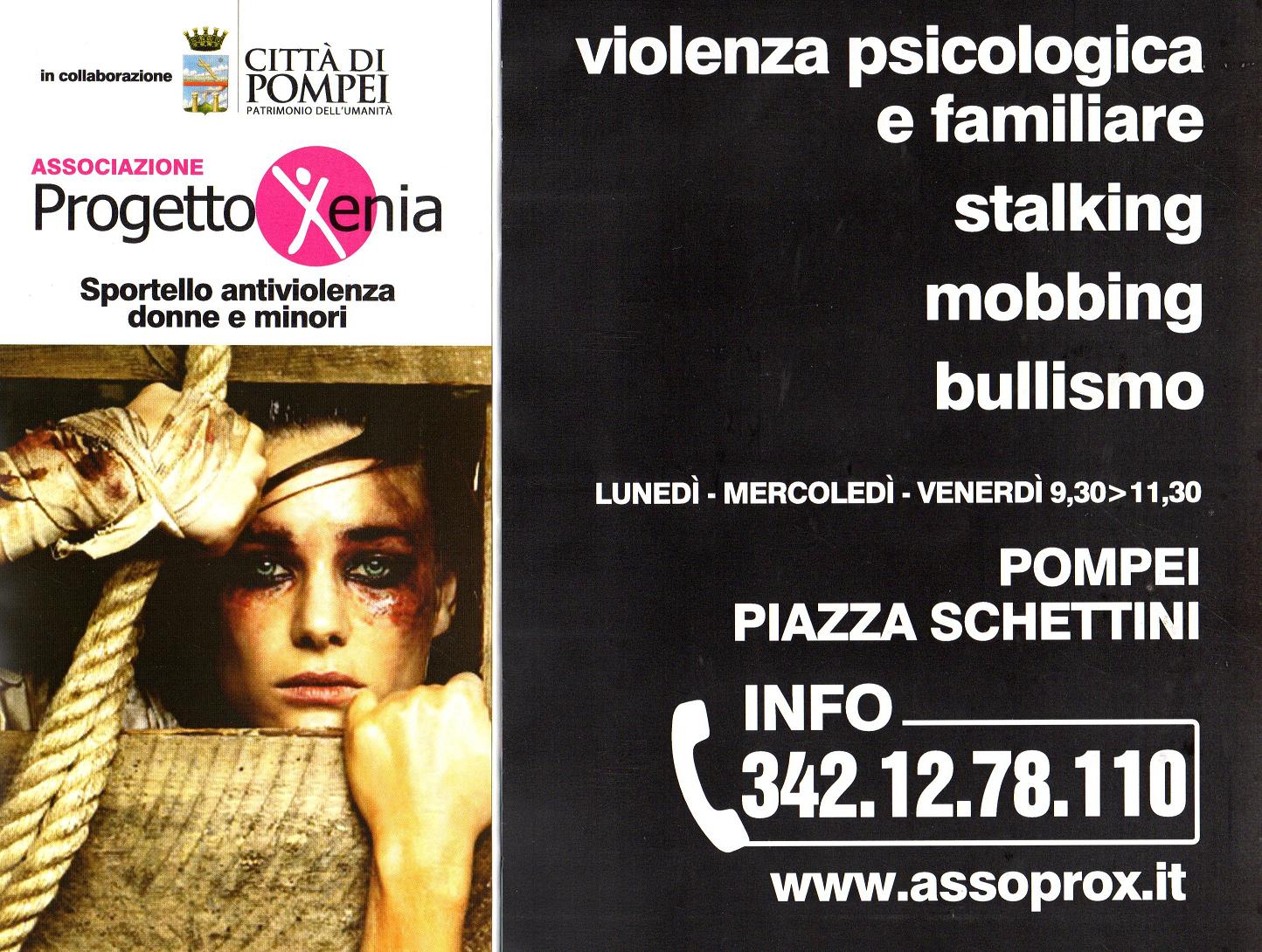 Gli abusi su donne e minori si esplicano in molteplici forme che, pur mutando nel tempo, hanno delle caratteristiche costanti: le vittime si vergognano al posto dei carnefici, non parlano e non sanno a chi rivolgersi. Per rompere la spirale dell’isolamento e del silenzio a Pompei è stato istituito, in Piazza Schettini, uno sportello contro la violenza nei confronti delle donne e dei minori curato dall’associazione Xenia . L’inaugurazione, avvenuta nella mattinata del 20 novembre, giornata dell’infanzia, alla presenza del Sindaco Claudio D’Alessio, rientra negli interventi predisposti dall’amministrazione comunale a favore dei più deboli, amministrazione che, del resto, ha fortemente sostenuto l’iniziativa mettendo a disposizione i relativi locali. L’attività del centro, come sottolinea la presidente dell’associazione Antonietta Di Capua, consiste nel fornire un’assistenza gratuita e costante alle vittime di soprusi che vanno dal bullismo allo stalking, dal mobbing agli abusi psicologici e familiari, attraverso la consulenza di psicologi, avvocati e sociologi. La vicinanza alle vittime sarà possibile grazie a un contatto telefonico continuo mentre lo sportello è aperto al pubblico il lunedì, mercoledì e venerdì, dalle 9.30 alle 11.30, in modo da instaurare un primo contatto in base al quale attivare le diverse forme di sostegno. Intanto, sempre a proposito di donne, il 25 novembre avrà il via a Pompei la rassegna “Non è un paese per donne?!” con la proiezione, alle 17.00 presso l’aula consiliare del comune, del film “Ti do i miei occhi”, incentrato sul tema della violenza domestica. L’iniziativa, illustrata da Rita Montemarano, delegata alle Pari Opportunità per il comune di Pompei, si svolgerà nell’arco di vari mesi con diversi appuntamenti come la presentazione di libri, film e opere artistiche che mettono in evidenza il talento delle donne al fine di sradicare i pregiudizi che ancora le penalizzano, perché si possa finalmente sostenere che anche l’Italia è un paese per donne.