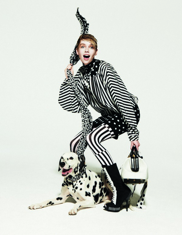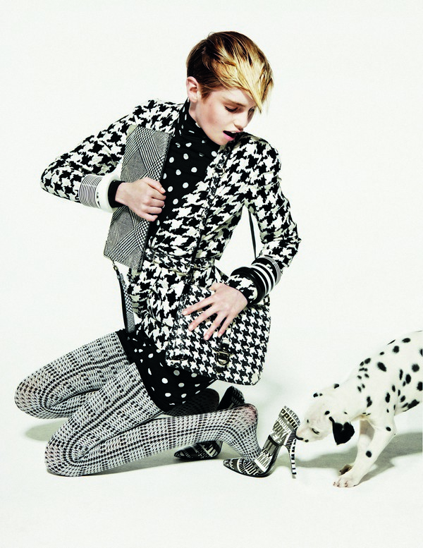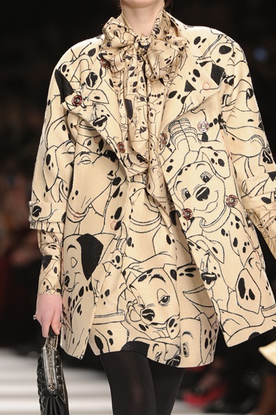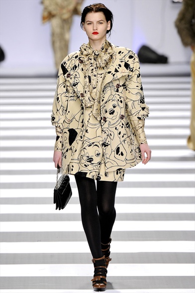 Arrivano i dalmata! E non si tratta – esclusivamente -degli adorabili Peggy e Pongo e della loro tenerissima cucciolata – che diventano anche print su abiti a sacco e cappe firmate JC de Castelbajac -, ma del famosissimo chiazzato disneyano esteso a “macchia”- possibilmente tonda simil pois – su colli perbene – Marc Jacobs -, collier a boules – Marni – e vezzosi booties con volants – Sergio Rossi – insieme a clutch , bauletti e pumps a righe , quadri e pois . E così tra zig-zag , fantasie zebrate , scacchi , cubi , pallini più o meno tondi , quadri & quadretti si da vita alla variabile più impazzita di un classico : il bianco e il nero (ovvio!! ) .
