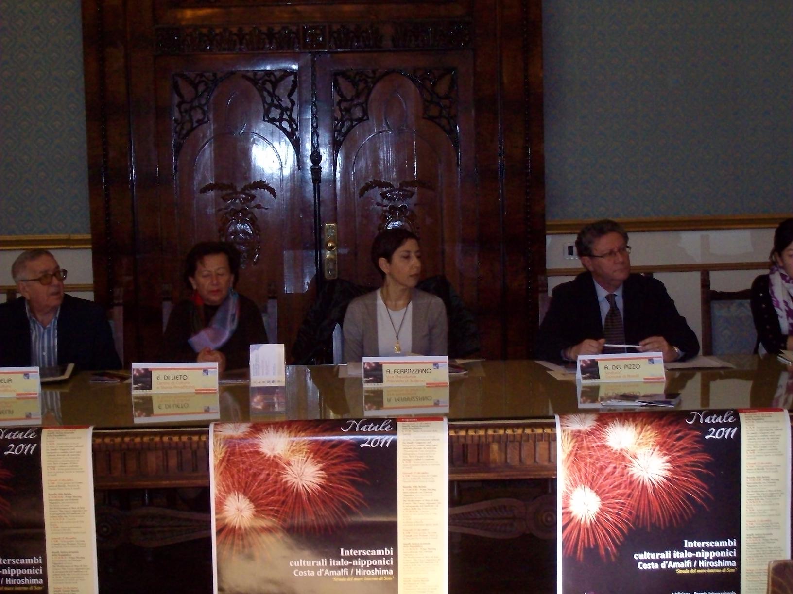Oggi 20 dicembre 2011 alle ore 10,30 presso la Sala Giunta della Provincia di Salerno si è tenuta la conferenza stampa di presentazione dell’evento Interscambi Culturali Italo – Nipponici Costa d’Amalfi / Hiroshima “Strade del Mare interno di Seto”,  iniziativa articolata in una serie di manifestazioni culturali seminariali e celebrative con valenze promozionali socio-economiche tra “la Costa d’Amalfi e la Strada del Mare di Seto /Prefettura di Hiroshima : i porti dei due mediterranei”.