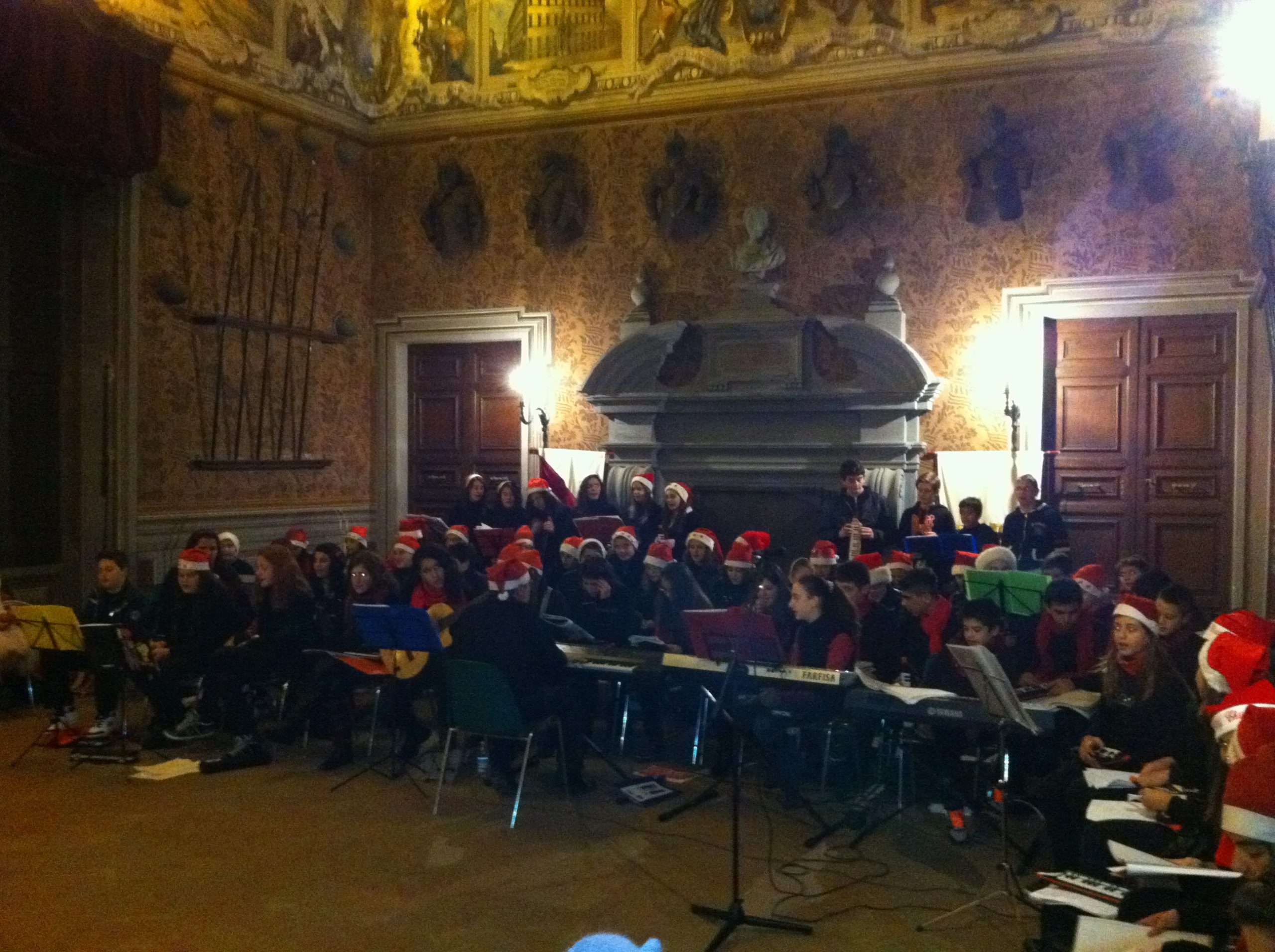 Il fascino e la maestosità del Castello Lancellotti di Lauro (Av) uniti alla bravura dei musicisti e danzatori della scuola media “B. Croce”. Tanta buona musica e danza, tanto divertimento e sorprese a non finire. Questo in poche parole è stato il tradizionale concerto di Natale della scuola media “B. Croce” di Lauro (Av) che si è svolto ieri – martedì 20 dicembre – nell’incantevole cornice della Sala d’Armi del Castello Lancellotti, nell’ambito del cartellone “Lauro InVita – Magia di Natale”. Quasi due ore di musica e festa organizzate dai professori della scuola media,hanno danzato anche alcune alunne della scuola media di Taurano, in cui quasi 100 alunni si sono esibiti con chitarre, flauti e claviette divertendo il folto pubblico presente, che ha apprezzato il mix coinvolgente e divertente di canzoni predisposto. Anche il programma è stato un compendio di quanto di meglio gli alunni diretti dal professore Cicco Lauro hanno espresso nel corso degli ultimi tempi: un repertorio messo in scena che spaziava dalle più classiche canzoni natalizie, a brani più moderni o al tango di Astor Piazzola. E alla fine un dolce dono per tutti i protagonisti della magica serata di ieri: un Babbo Natale di cioccolato in ricordo dello splendido concerto offerto. Tra concerti di Natale e spettacoli a teatro, il periodo delle feste natalizie a Lauro è pieno zeppo di appuntamenti tra palchi e platee. Oggi – mercoledì 21 dicembre – saranno gli alunni della scuola elementare ad allestire un mercatino nella Chiesa della Collegiata a Lauro: dalle 17,00 ci sarà anche l’esibizione del coro della scuola diretto dalla maestra Maria Elisa Scibelli. Venerdì 23 dicembre, invece, previsto un concerto di Natale nella Chiesa di Ima; la notte della Vigilia di Natale, inoltre, il tradizionale falò nella frazione di Fontenovella sarà allietato con della musica popolare, con “Quann Nascette Ninno”. Giovedì 29 dicembre previsto uno spettacolo dal sapore davvero particolare: “‘O sisco ‘e Filucciello”, progetto finalizzato alla rivisitazione dei tesori più nascosti della canzone napoletana (senza però trascurare i classici). Il nome del gruppo è ispirato ad una commedia del grande Raffaele Viviani: Campagna Napoletana. Per l’ultimo dell’anno torna il tradizionale “Brindisi in Piazza” con un’attenzione particolare ai più giovani e l’esibizione di un Dj; doppio concerto di Capodanno il 1 gennaio 2012, nella chiesa madre di Lauro alle 20,30 con l’esibizione di Cori e nella frazione di Pignano con musica classica. “Lauro InVita – Magia di Natale” procederà poi con il “Presepe Vivente”, ed il Concerto per l’Epifania nella Frazione di Migliano.