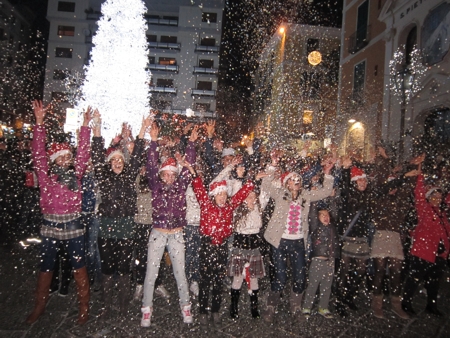 Il gruppo sangiorgese si è poi spostato in Piazza Flavio Gioia nei pressi del coloratissimo arcobaleno di luci.