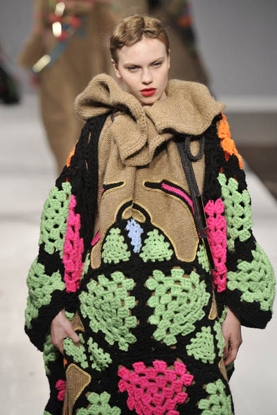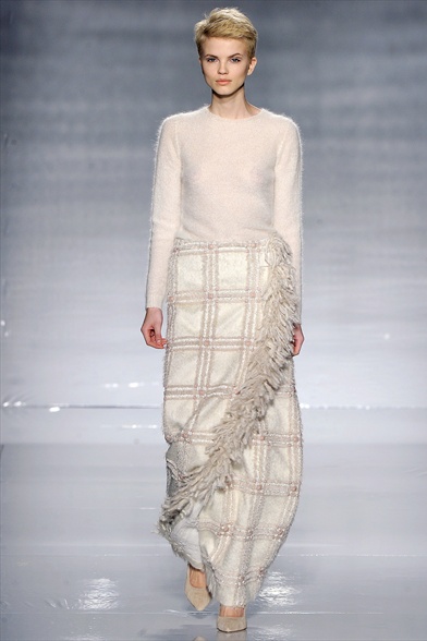 Si presta , però , in maniera eccellente anche a giochi più ardui : eccola trasformata in un lungo coat nella collezione Jean-Charles de Castelbajac ; prestare le lunghe e spettinate chiome – frange – come visto da Alviero Martini dando vita a cappe coccooncs ; giocare con lo chic di una palette neutra e l’intreccio di un filo di lurex dando vita a coat lunghissimi e gonne kilt – Max Mara – dal sapore assolutamente chic ,