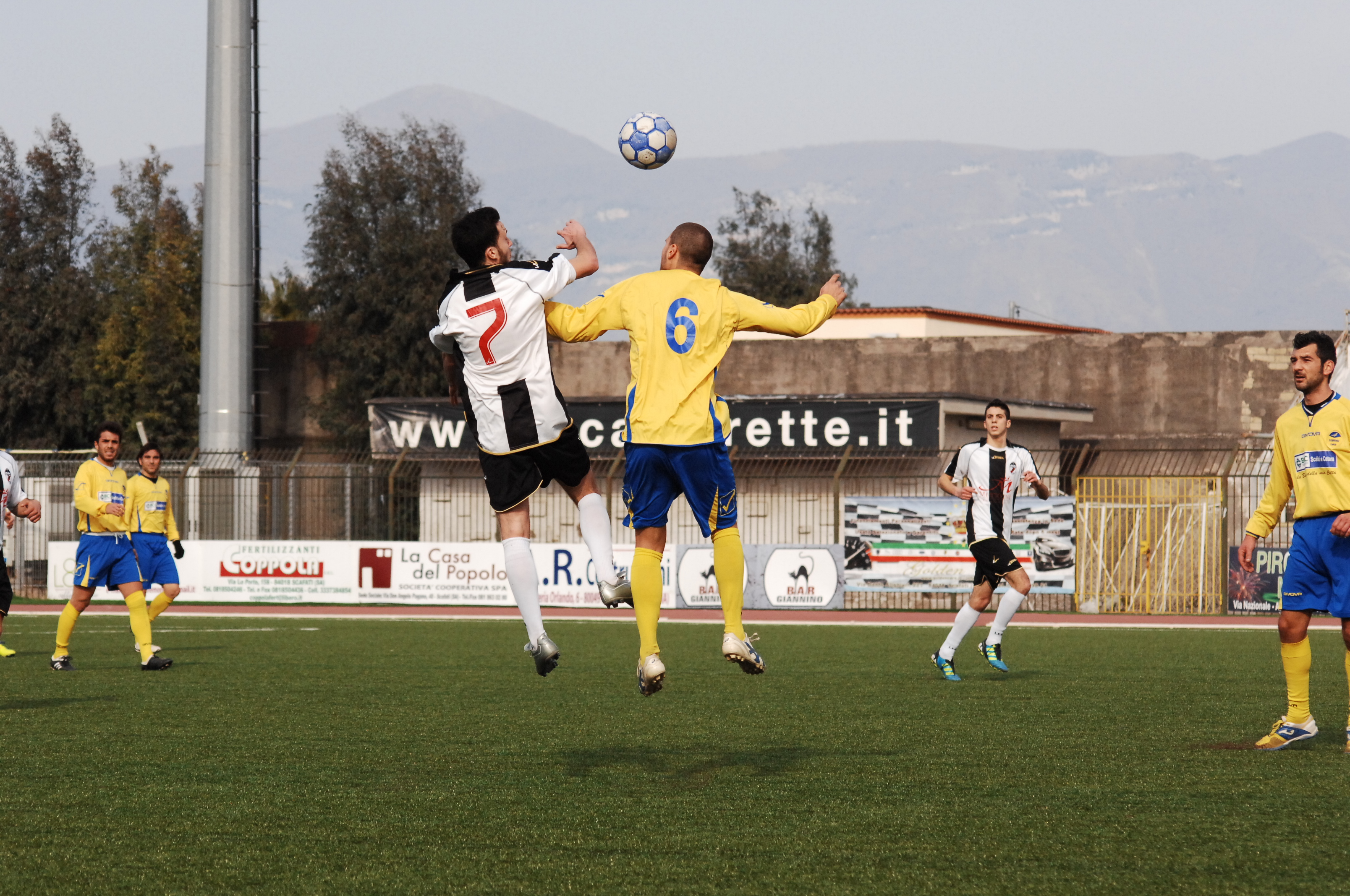 In campo il derby più atteso dal campionato di Seconda Categoria girone M: Scafatese Calcio – San Vincenzo Unitis. Al primo minuto una punizione per il San Vincenzo ai limiti dell’area: si oppone Petrazzuoli al tiro nell’angolo destro alto della porta gialloblù. Arriva poi la reazione dei canarini che sfiorano più volte il vantaggio. E’ ancora zero a zero al 20′ del primo tempo quando un tiro dei bianco-neri cerca di violare la porta di Petrazzuoli ma fallisce. Parte il contropiede della Scafatese Calcio, Mauro Adiletta brucia il campo dello stadio comunale con un bolide raso terra che manca di poco il palo avversario. Non è ancora finita. Al 24′ esce Alessandro De Felice che ha avuto un piccolo infortunio : al suo posto fa ingresso in campo Langella Francesco, new entry della Scafatese Calcio. Prima gara in gialloblù.
