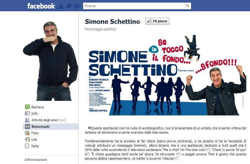 Nel suo nuovo spettacolo, pur mantenendo inalterata la forza comica e la centralità dei suoi monologhi, Schettino… ha scelto di contestualizzarli e di inserirli in un universo non solo evocato ma rappresentato e scenograficamente riconoscibile: il mondo della televisione; un mondo avido ma al contempo ricco di suggestioni e promesse che attira nella sua orbita Simone, nei panni di un talentuoso ma sconosciuto aspirante comico napoletano, protagonista per una sera della trasmissione televisiva “UNO QUALUNQUE”.