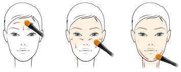Si inizia con l’applicare un tocco al centro della fronte che andrà , poi , sfumato con la punta delle dita e con movimenti a raggiera , fino ad arrivare all’attaccatura dei capelli ( senza coprire le radici ) . Stendere una piccole dose sul naso, sfumandolo con attenzione , partendo dalla punta fino a