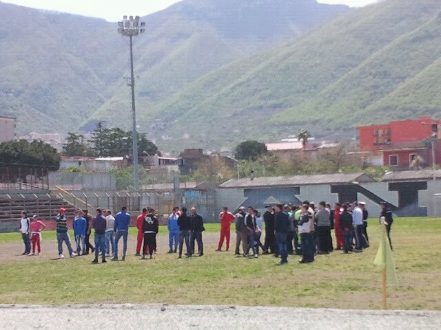 Giornata dolente per l’U.S Angri. La gara che i grigiorossi avrebbero dovuto recuperare contro il Real Corbara programmata per stamane, alle ore 10, presso lo stadio “Novi”, non è stata disputata a causa della mancata tracciatura del terreno di gioco. L’arbitro, Vittorio Soldi di Salerno, dopo aver atteso i canonici 45 minuti previsti dal regolamento, ha dichiarato chiuso il match per la mancanza di condizioni necessarie per poterlo disputare. Rabbia e proteste non solo da parte della società grigiorossa, ma anche da parte dell’attenta e assidua tifoseria presente sugli spalti per assistere alla gara. Ora per la stessa ammissione del sindaco di Angri, Pasquale Mauri e dell’assessore allo sport Giacomo Sorrentino, sarà avviata un’indagine interna per risalire ad eventuali responsabilità per la mancata tracciatura del terreno di gioco. Desolato e amareggiato, il presidente Gianni Ferrara ha dichiarato: “ Probabilmente non erano chiari i termini del regolamento della gestione dello Stadio. La società era disposta ad assumersi l’onere della tracciatura del terreno di gioco e purtroppo, non per colpa nostra, oggi non si è disputata la partita. Dopo 45 minuti, il direttore di gara l’ ha considerata chiusa. Farò presente in Lega le ragioni di questo spiacevole episodio e farò il massimo e l’impossibile per cercare di far recuperare la gara. Avremo un punto di penalizzazione in classifica e la partita persa, ma nei prossimi giorni si farà chiarezza sull’accaduto e sulle effettive responsabilità .” I tifosi, giustamente adirati per la mancata disputa della partita, hanno ottenuto un faccia a faccia col presidente Ferrara e col sindaco, durante il quale hanno esternato il grande rammarico per questo episodio che potrebbe portare alla prima sconfitta della stagione, anche se a tavolino.