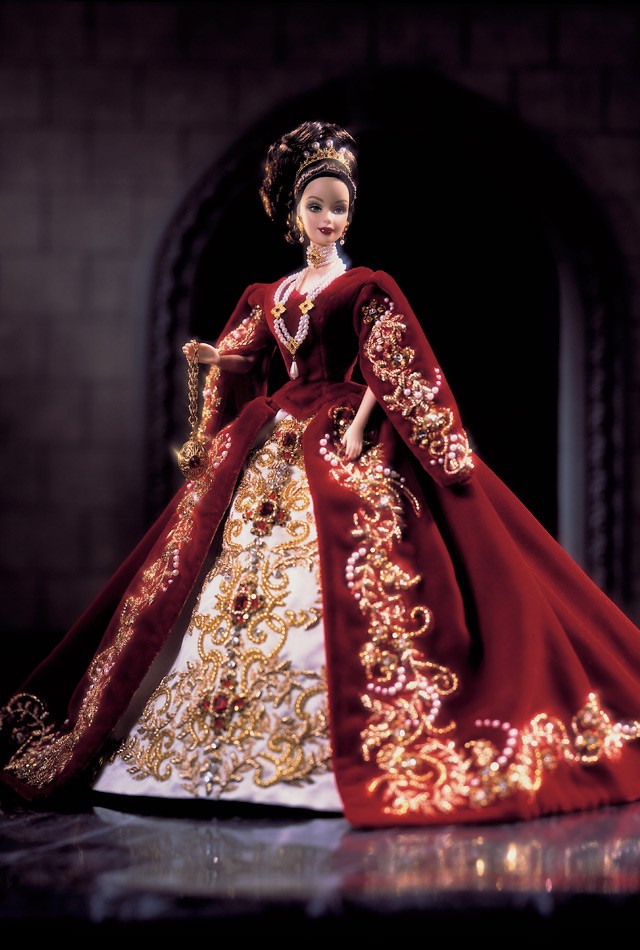 Capelli rossi per l’Imperial Grazia , nata , invece , nel 2001 . Decisamente elegante nel suo splendido abito di velluto nero che contrasta con l’avorio del raso , impreziosito dalle elaborate bordature e i minuziosi ricami . Ulteriore eleganza risulta quella aggiunta dalla collana, i pendenti e il copricapo di perle che incornicia il volto candido . Candore dato anche dall’utilizzo della finissima porcellana Biscuit rendendo , così , ancor più preziose ed uniche le Barbie . Capaci di rievocare , nel loro piccolo , anche in una semplice piega del proprio abito , in un ricamo.. la magia.. il fasto di un tempo.. di una tradizione..nonché di un sogno .