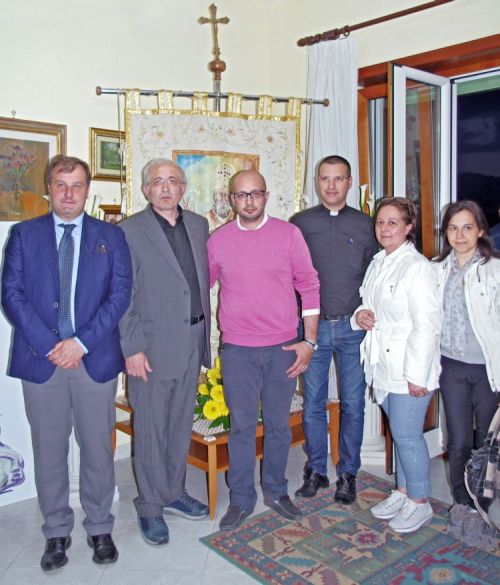 Una cerimonia semplice ed emozionante per benedire un momento di altissimo spessore cristiano. Si è svolta l’altra sera presso l’abitazione del Maggiore Antonio Grilletto a Nola, tra i protagonisti della Corporazione del Giglio del Salumiere in qualità di responsabile della comunicazione. Un impegno che ha coinvolto il Maggiore nell’arco di questi mesi che, l’altra sera, si è visto recapitare a casa la Bandiera del Giglio in un clima di totale fede e religiosità. La Bandiera è stata benedetta da Don Pasquale Capasso. Un momento bellissimo che ha visto la presenza, oltre degli amici più cari, anche del Sindaco Geremia Biancardi, di Autorità militari e civili, e di Don Luigi Merola, Prete anticamorra, noto per la sua battaglia contro l’illegalità. “Manifestazioni come queste – ha esordito Merola – dovrebbero essere quotidianamente al centro dell’attenzione, anche dei media. La Fede unisce ed oggi è straordinariamente emozionante leggere negli occhi dei presenti l’Amore per il Santo Paolino. Il vero male di questa terra non è la camorra quanto piuttosto l’ignoranza. Dove c’è Cultura c’è sapere, conoscenza, amore per il proprio territorio di riferimento. Facciamo sì che, con iniziative come queste, le Città vengano fuori per la loro bellezza e non per il degrado. Complimenti vivissimi per la Fede che portate dentro e trasmettete al popolo”.