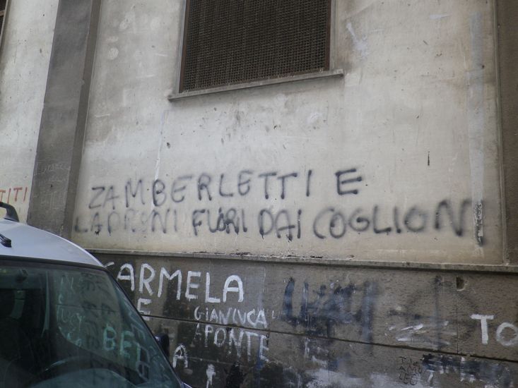 Il fallimento è così evidente che passeggiando nel centro storico, ancora terremotato, di Castellammare di Stabia tra i palazzi diroccati e pericolanti, che di tanto in tanto crollano come se fossero piramidi di carte, è possibile leggere alcune scritte risalenti agli anni del terremoto, che testimoniano lo scoramento della popolazione che già allora chiedeva una giustizia che mai ha avuto. La più eloquente di queste scritte riporta testualmente queste parole “Zamberletti e ladroni fuori dai coglioni”.