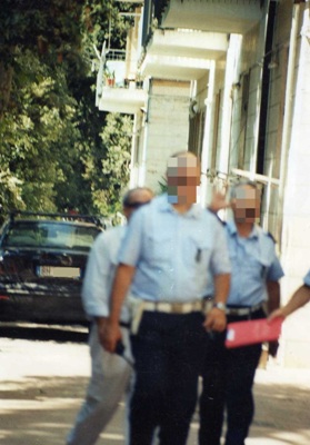 Quinta foto: I vigili urbani – presenti nella villa vesuviana di corso Garibaldi per effettuare un sopralluogo – non gradiscono le foto di Aldo Oliviero. Un agente della Polizia Municipale fa il gesto delle corna. La foto risale al 2006.