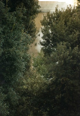 Terza foto: Dai rami degli alberi si innalza una nube di fumo. I rami degli alberi potati vengono bruciati tra le abitazioni che circondano la villa vesuviana di corso Garibaldi
