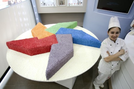 Tra i numeri da capogiro, dai metri quadri ai negozi, del centro commerciale “La Cartiera” non poteva mancare anche un dolce dalle dimensioni mastodontiche, a misura della nuova impresa. A realizzarlo è stata la pasticceria “De Vivo”, celebre marchio storico del centro cittadino, che ha così festeggiato l’apertura del nuovo punto vendita all’interno del neonato ipermercato pompeiano. Si tratta, infatti, di una torta gigante con i suoi circa 250 chili di peso, 35 centimetri di spessore e due metri e mezzo di diametro, numeri che fanno sognare i golosi e non solo. Un gustoso risultato ottenuto grazie alla fatica e alla dedizione di ben otto pasticcieri che hanno lavorato per tre giorni ininterrotti. Curato anche nel design, il mega- dolce riproduce l’ormai famoso logo del polo commerciale, ovvero una girandola stilizzata a cinque punte con i colori dell’iride. Per quanto concerne la sua composizione dolciaria, invece, si tratta di un pandispagna che alterna crema chantilly e cioccolato al gianduia, con fragoline fresche di bosco e un leggero gusto al limone. Imponenti sono anche le cifre degli ingredienti utilizzati per realizzarlo: un quintale e mezzo di farina, 480 uova fresche, 70 chili di zucchero, 60 litri di latte e cinque chili di fecola. “Ci tenevamo – spiegano Marco e Nello De Vivo, titolari della pasticceria nata a Pompei nel 1955 – a fare qualcosa di particolare per iniziare nel migliore dei modi questa nuova avventura nel centro commerciale”. Un motivo in più, quindi, per i golosi di tutta l’area vesuviana per recarsi al nuovo centro commerciale, appena aperto e già affollatissimo.