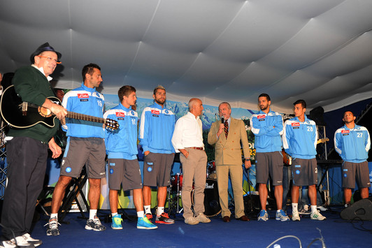 Il Presidente è poi salito sul palco insieme ai due nuovi acquisti Behrami e Gamberini ed altri calciatori azzurri: Gargano, Colombo, Fornito e Bariti.