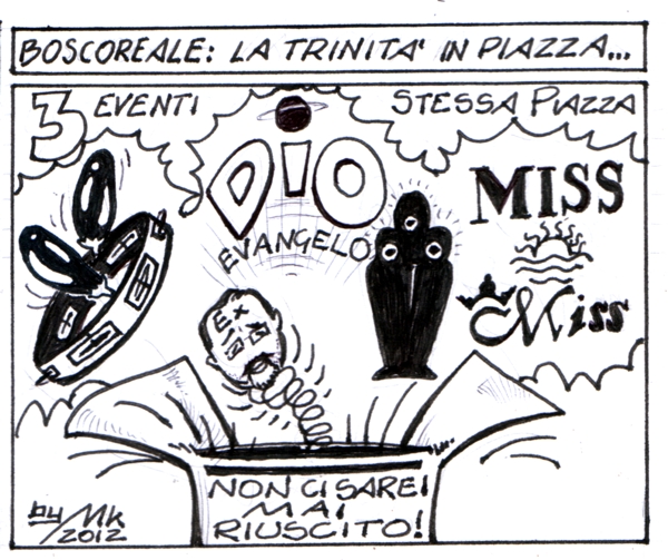 Tre manifestazioni contemporaneamente e tutte con cori, musiche e tanto di amplificatori e casse. Sacro, profano e tradizione, così potrebbe essere definita una serata in cui da una parte si svolgeva la “Sagra della melanzana”, organizzata dall’Asilo 41, appunto nei pressi dell’ex scuola dell’infanzia abbandonata, dall’ altra la sfavillante manifestazione di bellezza e spettacolo di Miss Ondina Sport, portata a Boscoreale dall’ Associazione Marilyn ed organizzata già da mesi.