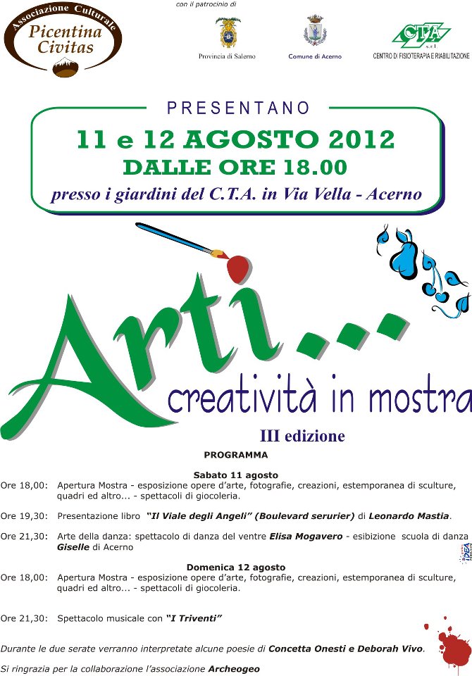 L’associazione “PICENTINIA CIVITAS” ha organizzato per l’anno 2012 la terza edizione dedicata all’arte contemporanea – pittura, scultura/installazione, fotografia ecc..