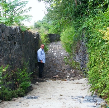 Un sopralluogo con il consigliere, da via Casaliciello/Stella Splendente in direzione via Vallone, per monitorare quella zona del paese, ci porta nei pressi della seconda metà dell’alveo Casaliciello, uno degli alvei realizzati dai Borbone, gioielli di ingegneria idraulica costruiti in pietra vesuviana. Dentro l’alveo manomissione del letto, spazzatura, buste di indifferenziata, gomme, accumuli sabbiosi, testimonianze degli abusi da parte dei privati e dell’indifferenza, un contatore di acqua potabile da dismettere; le sponde borboniche quasi invisibili per la presenza di sterpaglie. Un alveo che, nonostante le modifiche del reticolo idrografico dovute alla realizzazione negli anni di molti collettori sotterranei, è ancora a cielo aperto ed ha una sezione che potrebbe sostenere il flusso delle acque senza pericolo di ostruzione, tracimazione e/o esondazione.