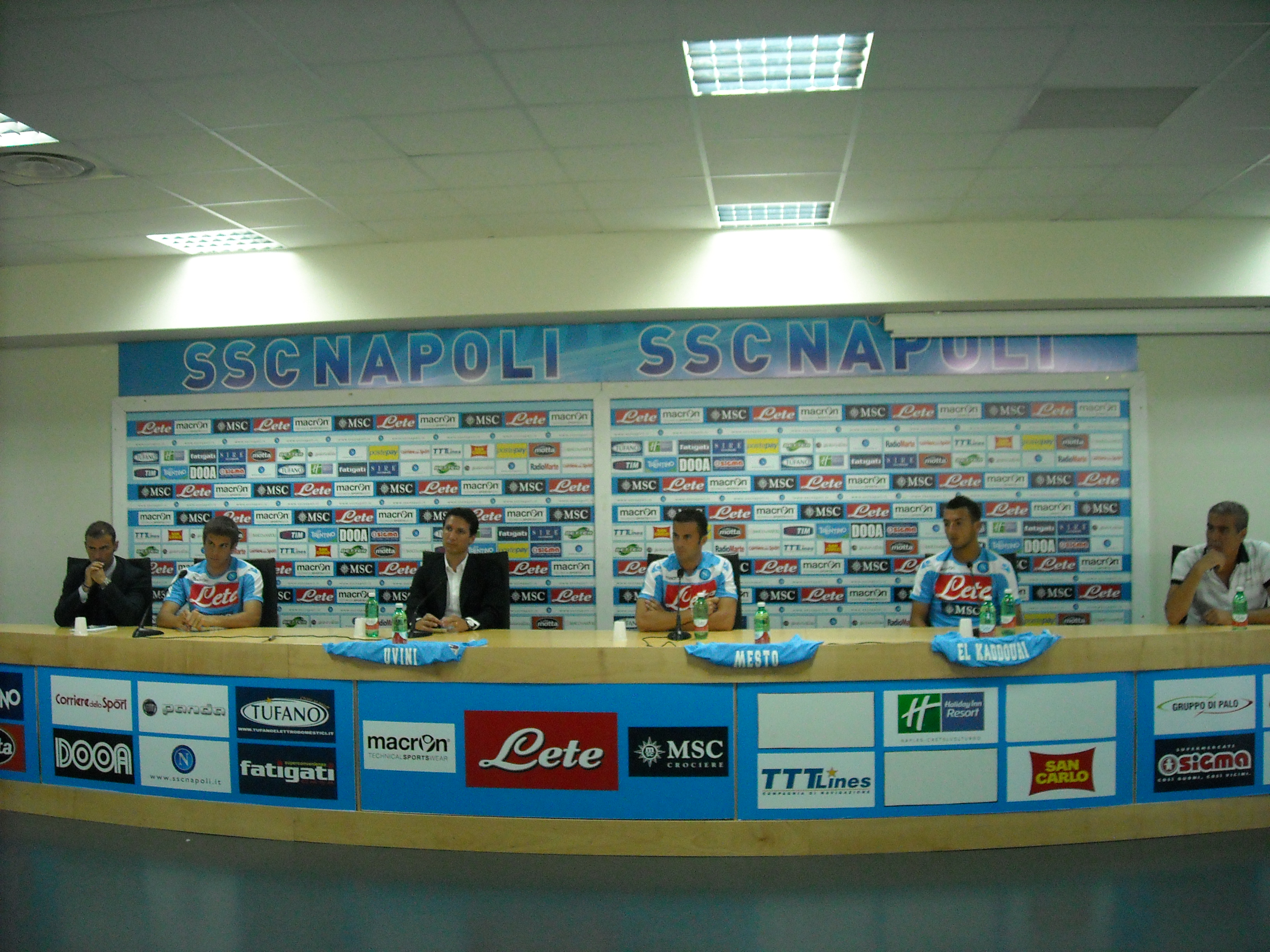 Conferenza Stampa da Castel Volturno in occasione della presentazione dei nuovi acquisti Uvini, Mesto ed El Kaddouri.In conferenza a presentarlli il Ds del Napoli, Riccardo Bigon. Ecco quanto evidenziato per voi da ilgazzettinovesuviano.com: