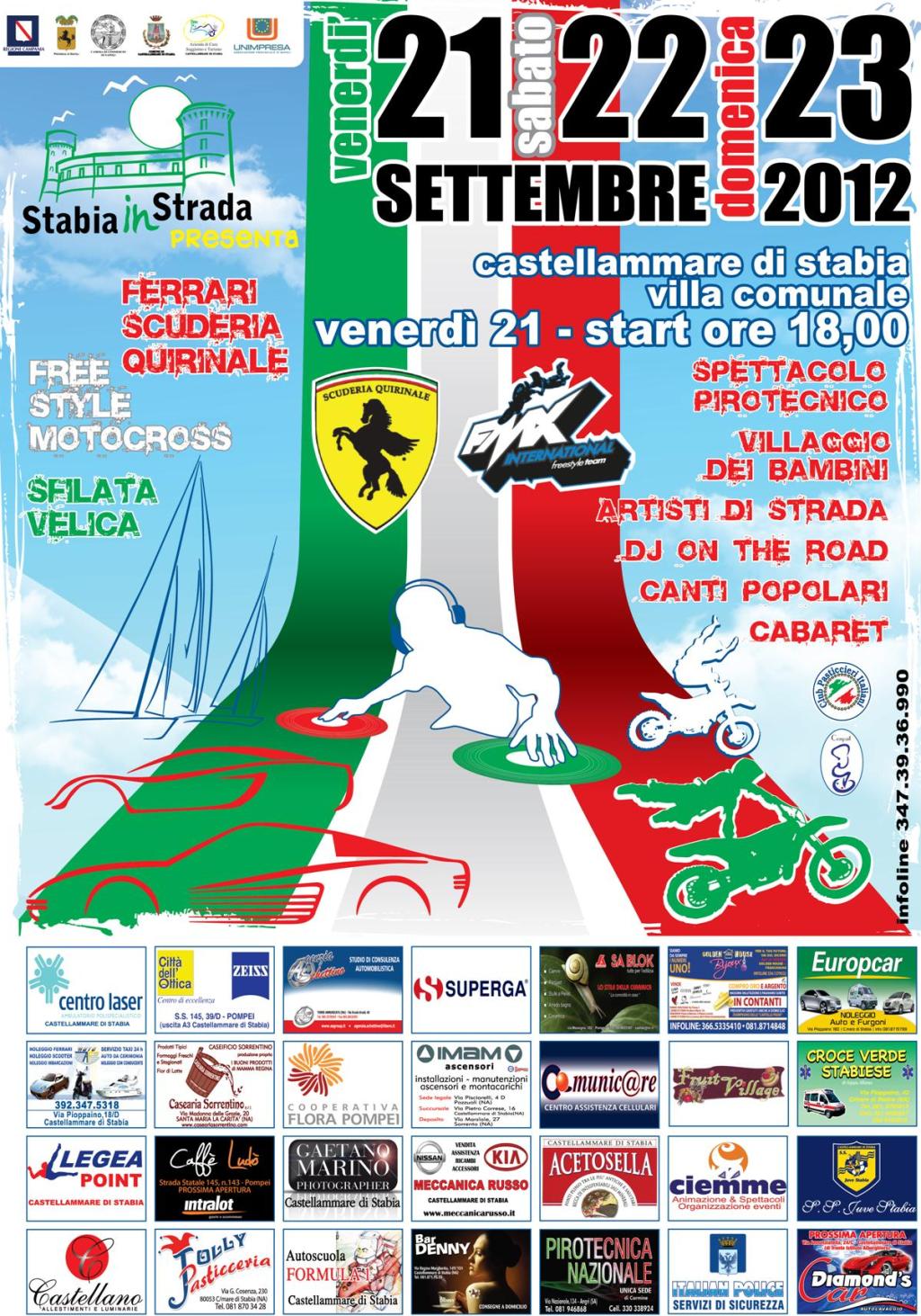 La “Prima festa di fine estate”, ribattezzata già “la favola di Stabia” per l’entità della manifestazione, offrirà uno spettacolo itinerante di sport e cultura con spettacoli di musica, teatro, animazione, musica live, dj set, cabaret, arte, gastronomia e soprattutto le quaranta Ferrari della Scuderia del Quirinale in bella mostra sullo splendido lungomare stabiese.