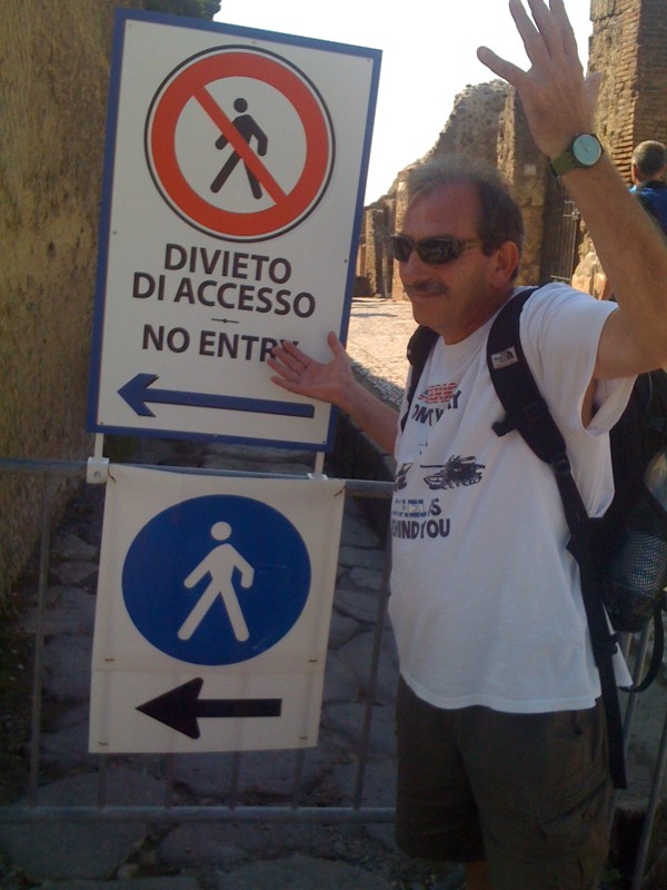 Qual è la strada per uscire dagli scavi di Pompei? Il dilemma affligge quotidianamente migliaia di turisti che dopo la visita al sito archeologico vogliono raggiungere i bus turistici o la stazione della Circumvesuviana. A Porta Marina infatti sono stati collocati due cartelli contraddittori, posti uno sull’ altro. Il primo indica il divieto di accesso anche pedonale; il secondo la direzione obbligatoria di uscita per i pedoni. Chi non è accompagnato da una guida turistica resta perplesso. In realtà quanti entrano nel sito archeologico dalla ripida e scivolosa strada che conduce a Porta Marina, la porta che dalla via del mare conduceva in città, non potrebbero più uscire dalla stessa porta ma dovrebbero deviare nell’area del tempio di Venere utilizzando una scala realizzata per rendere più agevole il transito in uscita. “La segnaletica – afferma l’architetto Antonio Irlando, responsabile dell’ Osservatorio Patrimonio Culturale -invece di chiarire, confonde le idee ai visitatori ed offre una pessima immagine della gestione del sito archeologico di Pompei, visitato ogni anno da oltre due milioni di persone”.