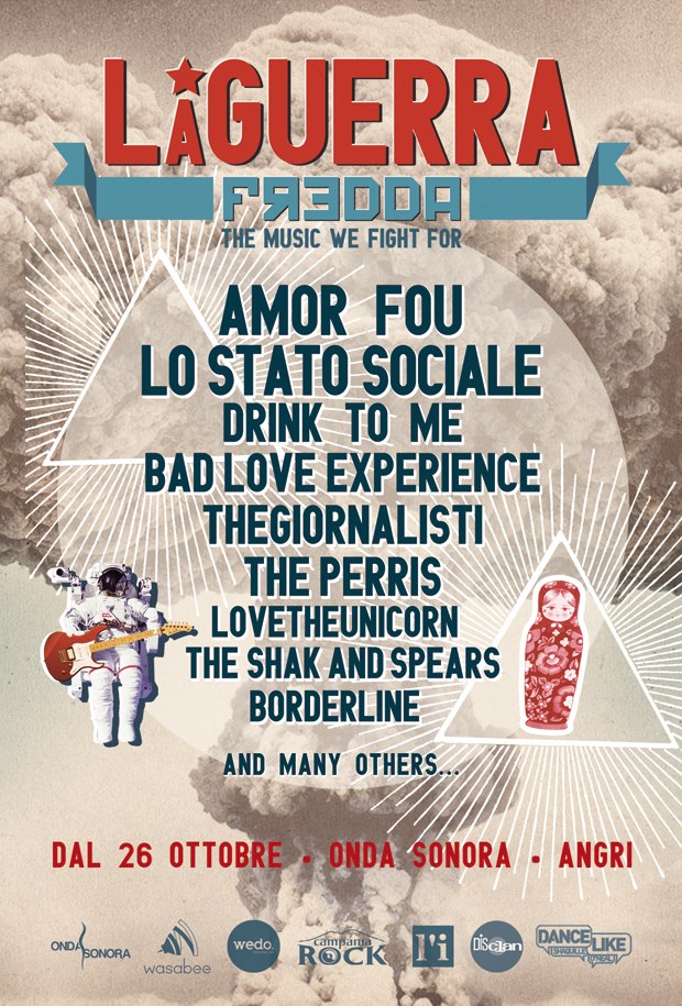 Dopo il successo de ‘La Bella Stagione Summer Music Fest’, Wasabee inaugura una nuova rassegna di concerti al club Onda Sonora di Angri. “La Guerra Fredda” prenderà il via il 26 ottobre con il doppio live dei Bad Love Experience e The giornalisti. Il festival ospiterà il meglio della scena musicale indipendente italiana lungo tutto l’arco della stagione autunnale-invernale. Nella line up band del calibro di Lo Stato Sociale, Amor Fou ed altri tra gli artisti più interessanti del panorama indie-rock dell’intera Penisola.