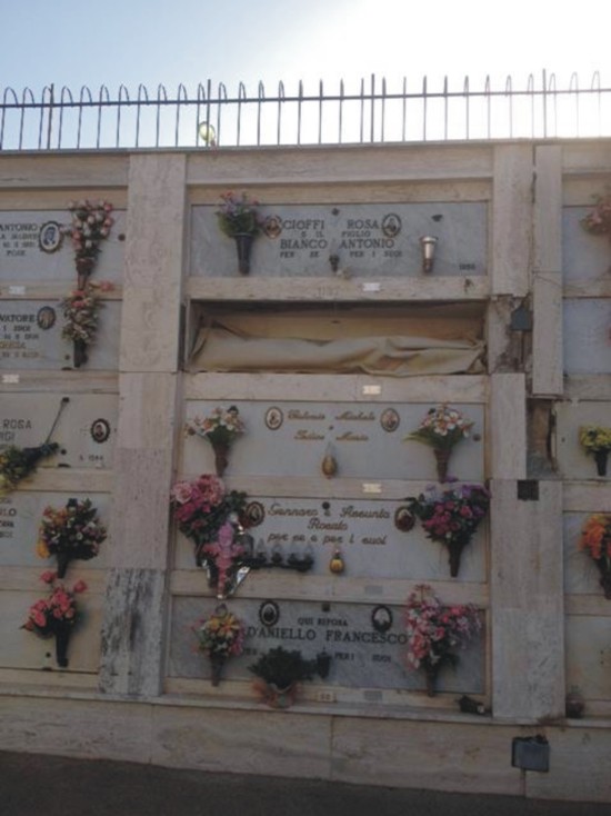 Al cimitero di Casalnuovo un loculo scoperto terrorizza i cittadini. Oblò e Verdi Ecologisti: ” il cadavere del defunto in bella mostra è stato coperto ultimamente da un lenzuolo solo dopo ripetute proteste di fronte ad uno spettacolo così macabro. Il comune deve intervenire prima della commemorazione dei defunti per non creare il panico nel cimitero”.