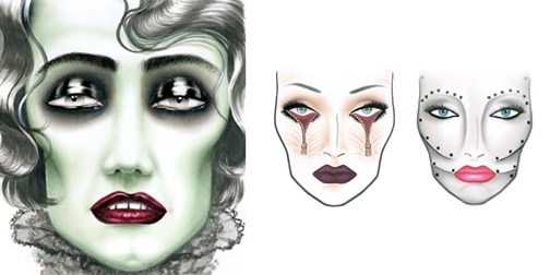 Adorate le bambole? Ecco un make up ispirato alle dolls.. dark, però!! Si inizia con una base chiara di fondotinta o dello stesso che utilizzate quotidianamente al quale avrete aggiunto uno bianco – anche ombretto o pigmento- steso anche su palpabre e sopracciglia “cancellandole”. Si passa, poi, ad enfatizzare i contorni del viso con un blush rossastro creando i tipici “pomelli”. Focus sugli occhi con matita ed ombretto antracite creando un occhio rotondo, da bambola, aggiungendovi anche ciglia finte sia sulla parte superiore che su quella inferiore . Eye liner in gel o matita blu per disegnare piccole vene attorno l’occhio. Gloss sulle guance pomellate di rosa e matita per creare ti puntini delle lentiggini. Labbra colorate con del correttore per neutralizzarne il colore, tocco al centro di rossetto ciliegia.