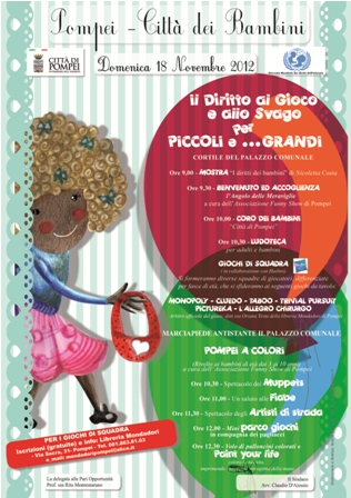 È una Pompei diversa, a misura dei più piccoli, quella disegnata dal progetto della “Città dei Bambini”. Nata da un’idea della delegata alle Pari Opportunità, la professoressa Rita Montemarano, coadiuvata da un’equipe di donne, la manifestazione giunge alla sua seconda edizione e si arricchisce. Per l’occasione, infatti, anche i grandi potranno mettersi in gioco grazie alla gara indetta dalla Hasbro che ha coinvolto centinaia di enti in Italia e all’estero. Rivolgendosi alla libreria Mondadori di via Sacra, infatti, sarà possibile iscriversi alle competizioni che ruotano intorno a giochi da tavolo popolarissimi come Monopoly, Cluedo e L’ allegro chirurgo, solo per citare i più famosi. La sola partecipazione garantisce alla città la dotazione di ben ventidue giochi da tavolo, ma vincendo la sfida con gli altri comuni coinvolti è possibile incrementarne notevolmente il numero. In tal modo sarebbe possibile creare una futura ludoteca comunale, anche se questo è solo un sogno e richiede la partecipazione attiva della popolazione perché si realizzi. In concomitanza con tale evento, inoltre, domenica 18 novembre, l’appuntamento con i bambini è alle 10.00 nel piazzale antistante Palazzo De Fusco. Ad animare la giornata sarà l’associazione pompeiana Funny Show, che coinvolgerà i piccoli dai tre ai dieci anni, in un percorso colorato con lo spettacolo dei Muppets, fiabe, esibizione di artisti di strada, giochi e dolciumi. Lo stesso saluto finale è pensato per incantare i bambini col tripudio di colori dei palloncini lasciati volare verso il cielo per simulare un arcobaleno e le impronte delle loro mani impresse su un telo bianco. Il tutto, come ricorda la professoressa Montemarano, per coniugare insegnamento e divertimento, favorendo, al contempo, la cooperazione nel rispetto delle singole individualità. Tale iniziativa, tra l’altro senza oneri per l’ amministrazione, ci proietta nella città del futuro non solo perché parla ai futuri cittadini ma anche perché è un’opportunità per immaginare la città che vogliamo. Una città, infatti, in cui anche i bambini, spesso dimenticati perché senza voce, possono avere i loro spazi, vivere e giocare liberamente è un luogo in cui ogni cittadino può vivere bene. Il sogno, quindi, è che quest’occasione speciale, prossima alla giornata per i diritti dell’infanzia, diventi presto una realtà quotidiana.